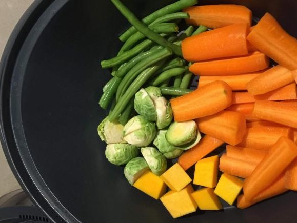 חומרים: 500 גרם תערובת ירקות קלופים וחתוכים גס (גזר, זוקיני, תפוח אדמה) 2 שיני קום קלופות 1 גבעול סלרי ללא עלים חתוך לקטעים של 2 ס"מ 80 גרם (יחידה קטנה) בצל סגול קלוף וחתוך לרבעים 120 גרם (יחידה קטנה) כרישה חתוכה לקטעים של 2 ס"מ, רק החלק הלבן 50 גרם רסק עגבניות 45 גרם (3 […]