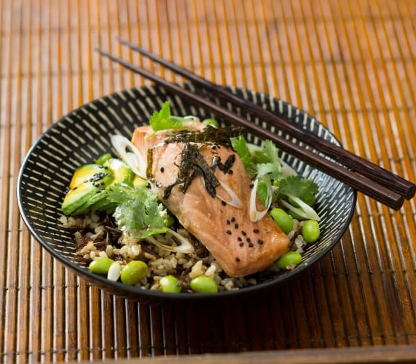פילה סלמון עם שעועית ונבטים בסגנון אסייתי