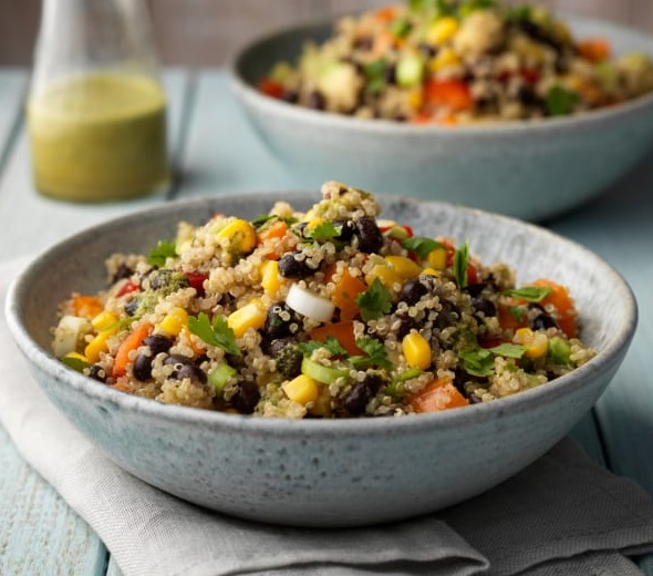 סלט עדשים שחורות וקינואה צבעונית