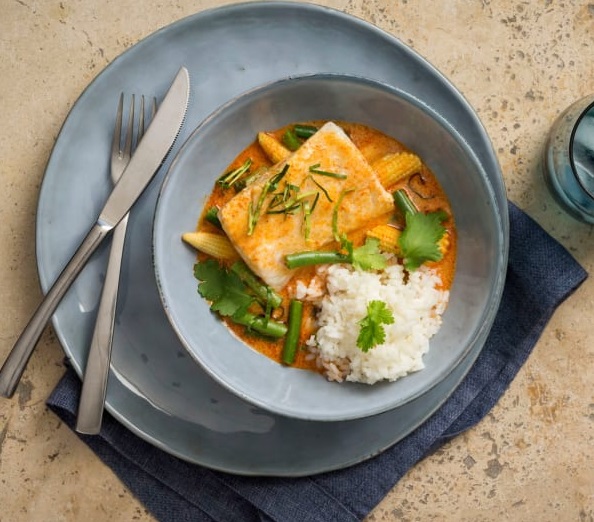 סלמון טיקה עם אורז בסמטי ושעועית ירוקה
