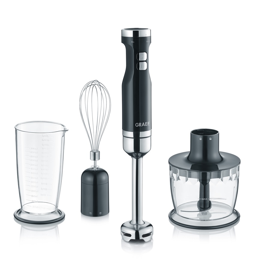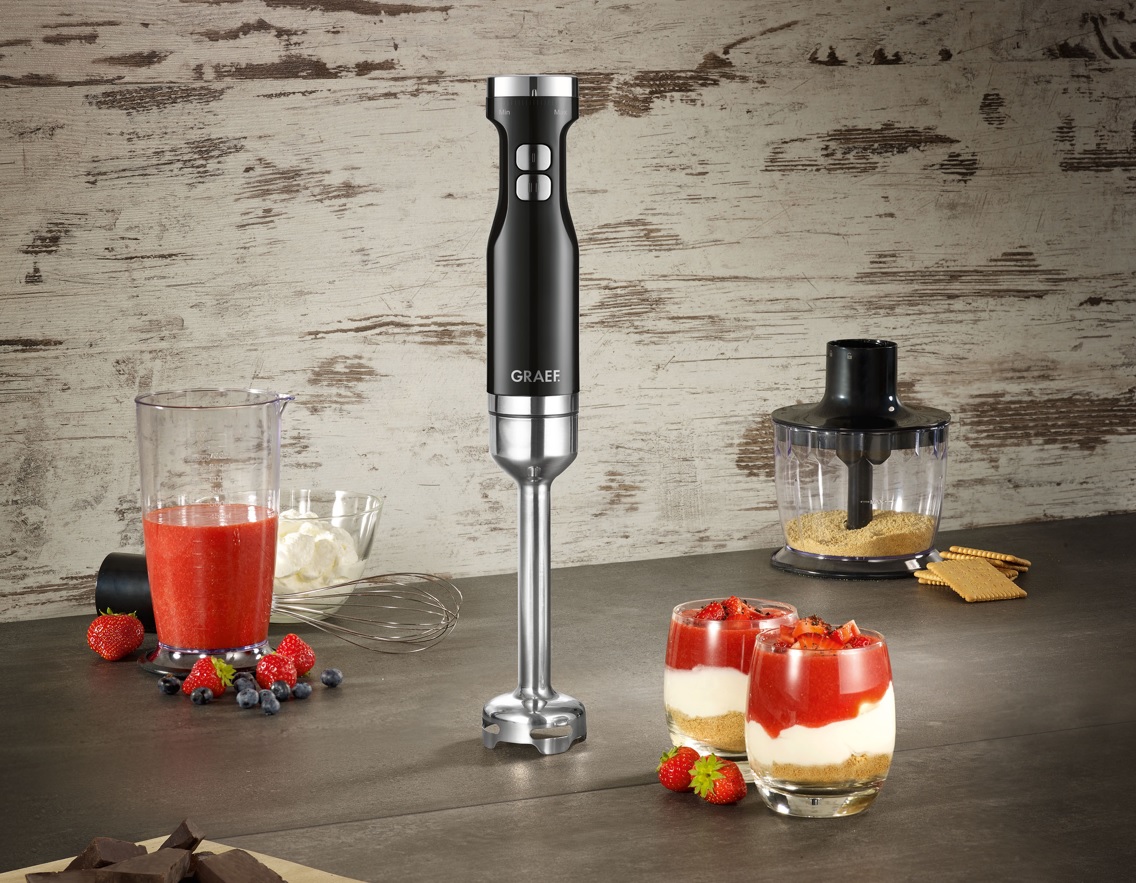 • ולא פחות חשוב: העבודה במטבח עם בלנדר היד של GRAEF היא חוויה מהנה: מארז הפלסטיק האיכותי בשחור מעוצב בצורה ארגונומית ונראה נהדר בכל מטבח.