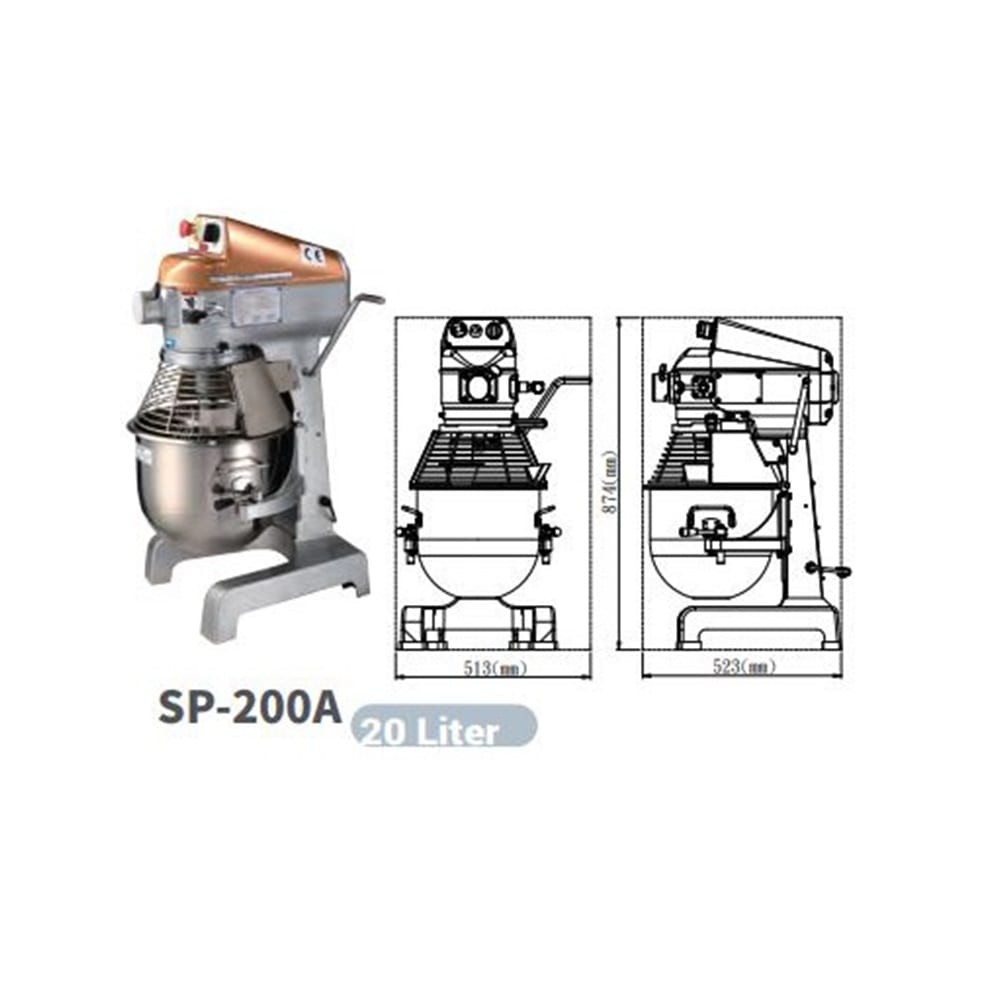 מיקסר רצפתי מקצועי מתוצרת טאיוואן, עם קערה בנפח 19 ליטר, מגן ביטחון, בורר 3 מהירויות, מתוכנן לעבודה בעומס גבוה