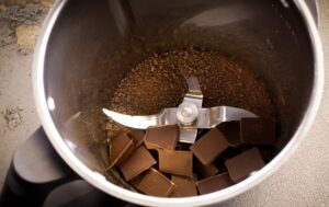 2. מכניסים לקערת התרמומיקס את חומרי הבצק עם 200 גרם קמח ולשים 6 דקות/ פונקציית לישה/ סיבוב ימינה של כפתור ההפעלה, מוסיפים בהדרגה במהלך פעולת התרמומיקס את יתר הקמח דרך חור הפקק עד שמתקבל בצק רך ויציב.